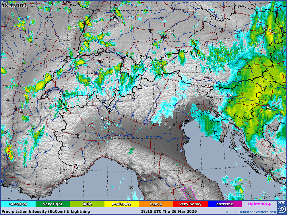 Latest MSLP-Analysis/SWC Satellite/Radar Europe