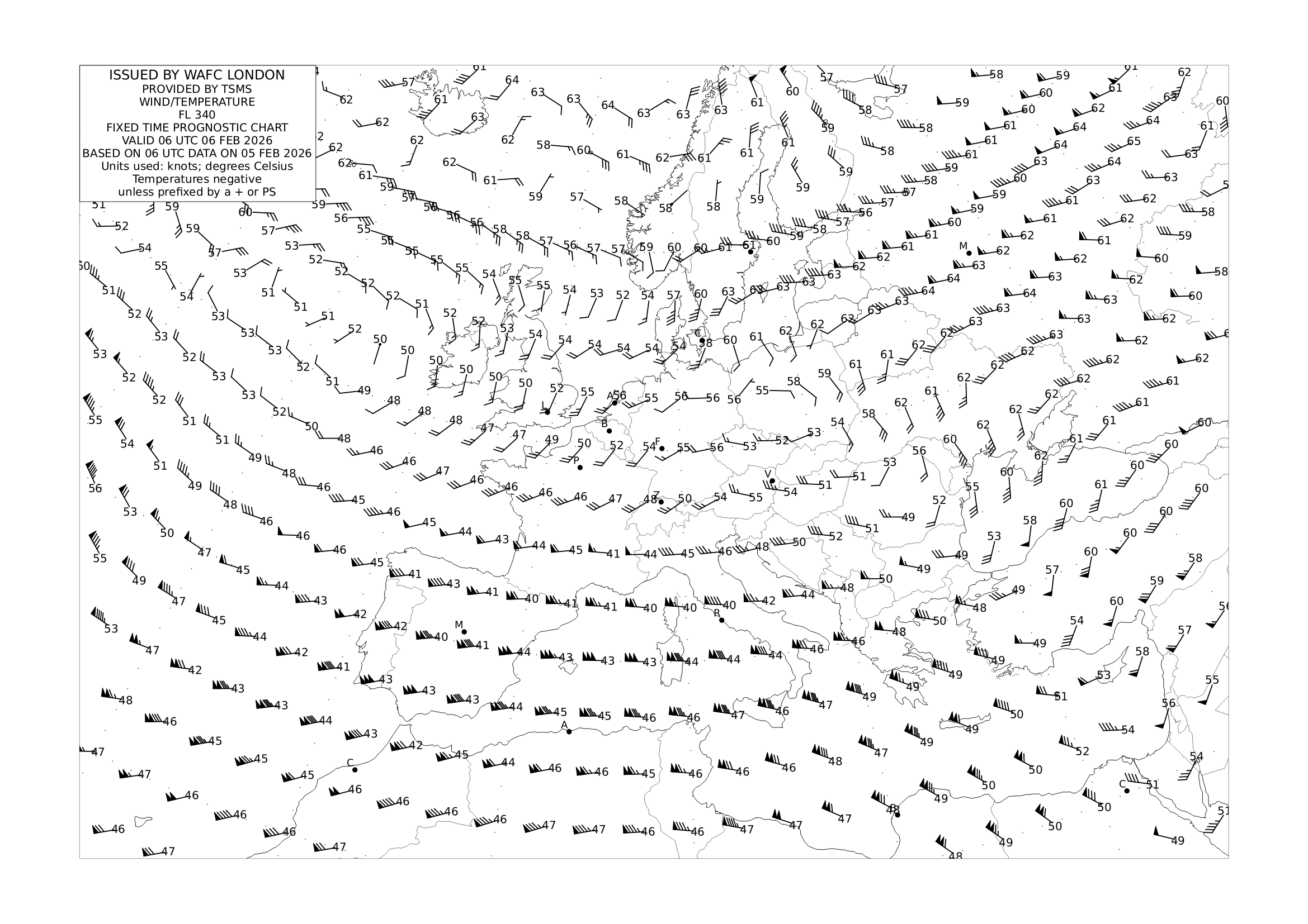 Wind/Temperature@FL340 EUR 00 06 12 18 UTC