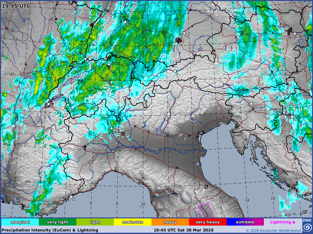 Latest MSLP-Analysis/SWC Satellite/Radar Europe