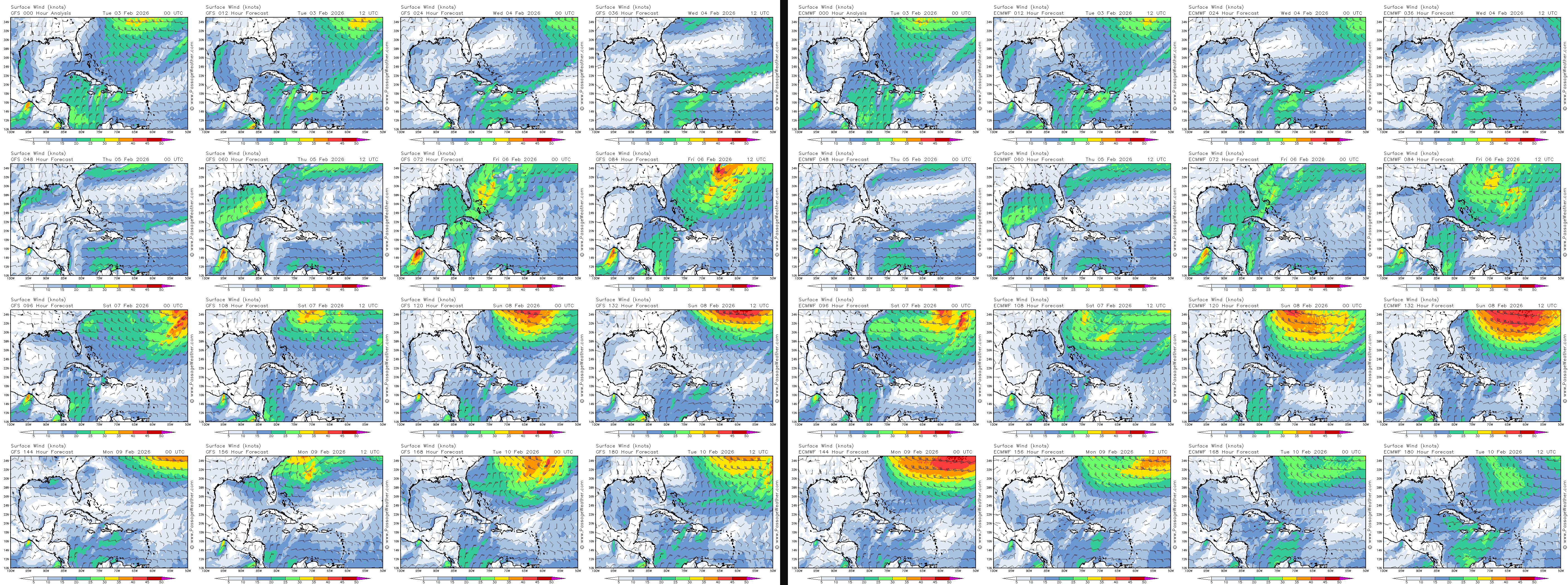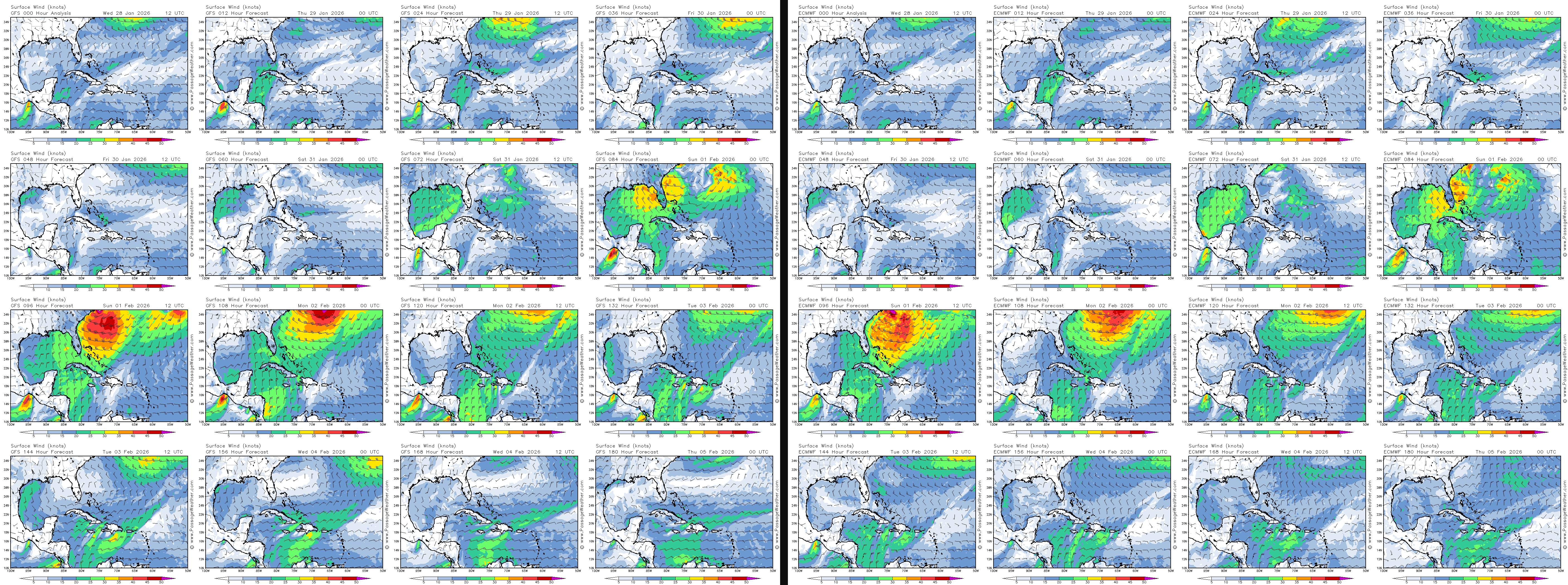 FC CARIB GFS vs ECMWF SUN 00