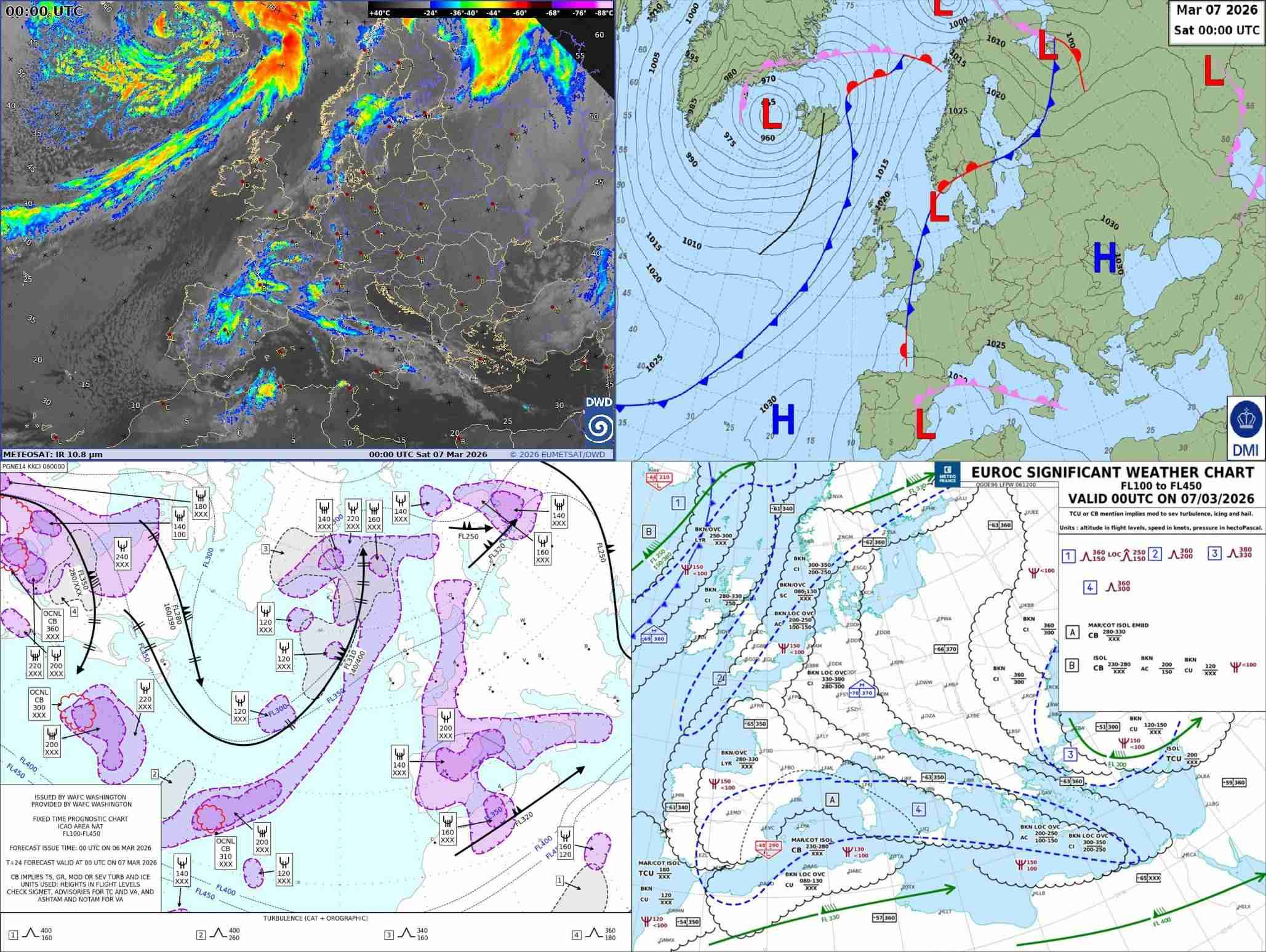 Europa und Asien abdecken. Die MSLP-Analyse mit Satelliten-Overlay erscheint leider nur um 06 UTC, die