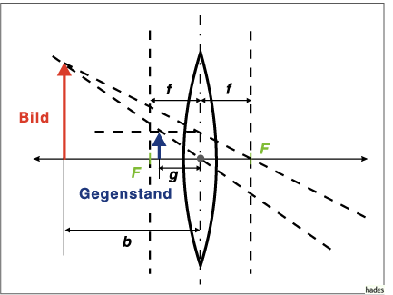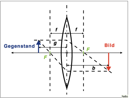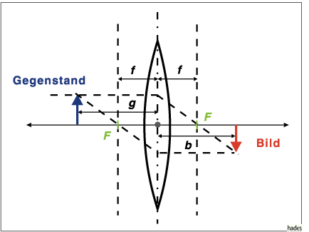 Dabei bezeichnen f die Brennweite der Linse, g die Gegenstandsweite und b die Bildweite.