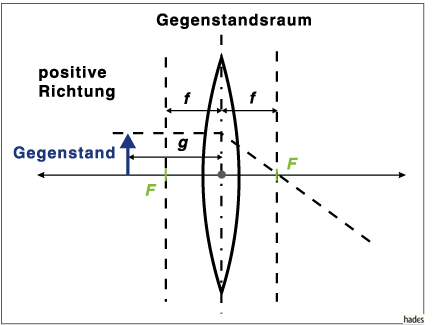 wird die Achse von der Linse zum Gegenstand, d.h. nach links, positiv gezählt.