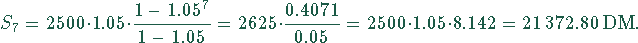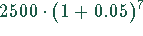 Sie zahlen jährlich am 1. Januar einen Betrag von 2500.- DM bei einer Sparkasse ein. Das eingezahlte Kapital wird am Ende des Jahres zum Zinssatz von 5 % verzinst. Welches Kapital haben Sie nach 7 Jahren gebildet?