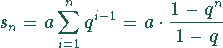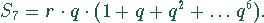 In der Klammer steht eine geometrische Reihe mit sieben Gliedern. Die Teilsumme einer geometrischen Reihe ist